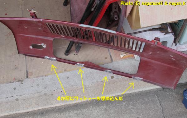こんな感じで、リヤエンジンフードの下辺4か所にワッシャーをハンダで貼りつけしました。