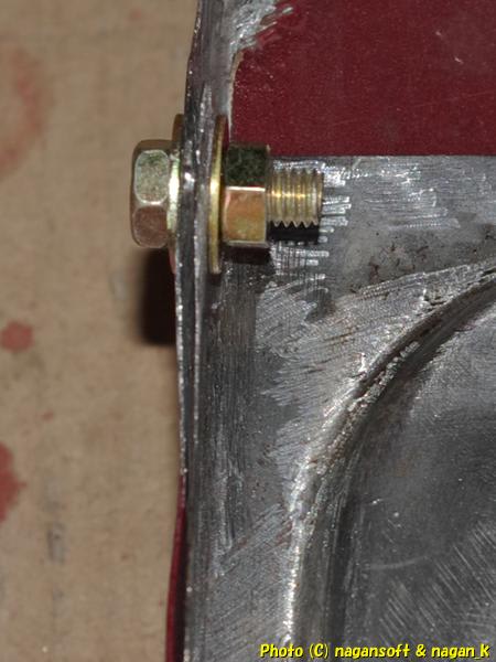 ボルト通し穴の部分は、貼りつけたワッシャーが面で受けているのでこんな感じでしっかり固定できています。