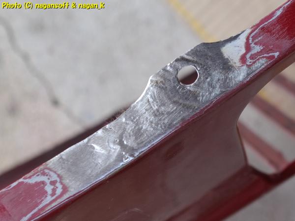 これも下辺のボルト通し穴周辺がサビ研磨をして鉄が超薄々の擦ったら気持ちいい状態になってました。