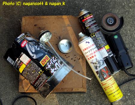 私の場合はスバルのチップコート剥離等で用いたパーツクリーナー、ブレーキクリーナーの空き缶が沢山あるので、それをブリキハサミで刻むことにしました。