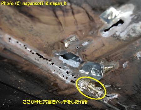 そして、車体裏から、センタートンネルの袋状態でサビ酷しになっている部位にパッチあてです。