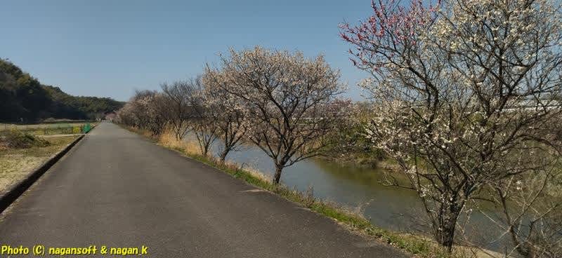 多分、梅の木だと思う。甘い花の匂いプンプンの河川横道路を歩いていくんです。