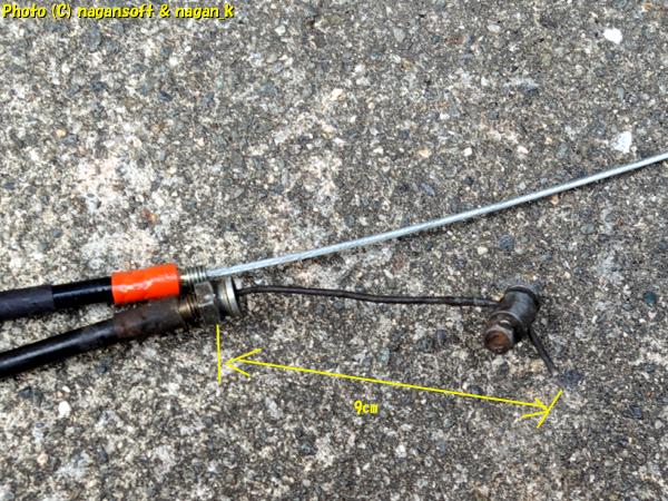 車体についていたワイヤーを計測して、アウターの終端から9cmワイヤーが飛びでてました。