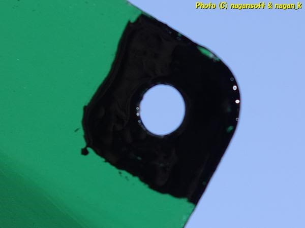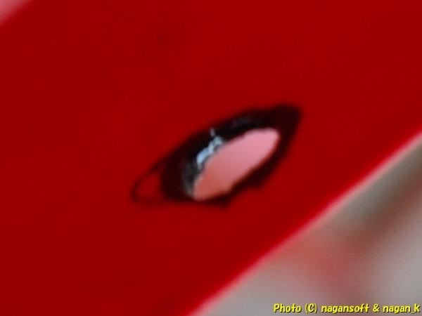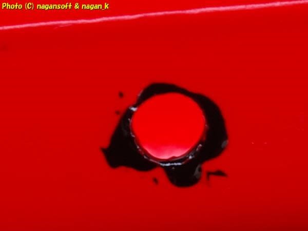 昨日にボルト通し穴を開けたところ、そしてボルト止めしたところを確認して、塗装剥げ部分をタッチアップします。