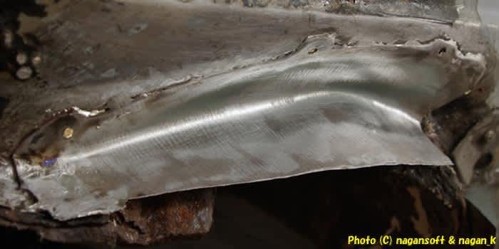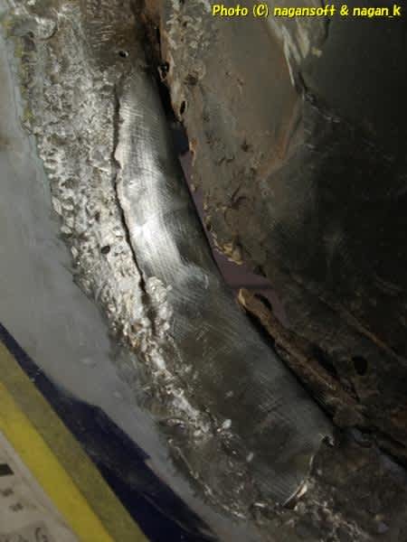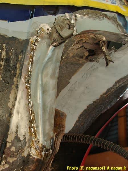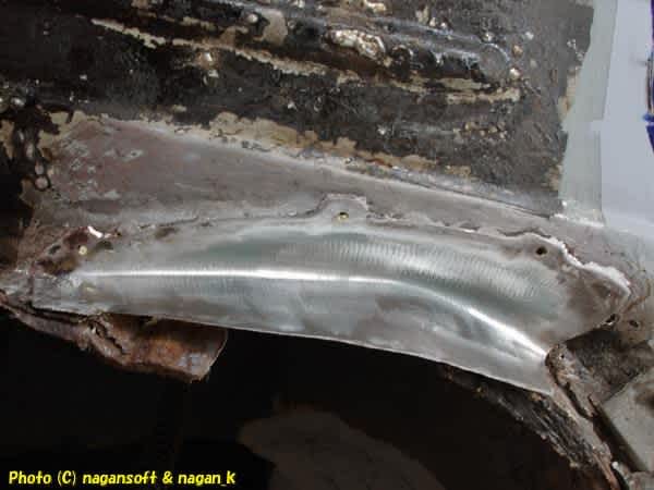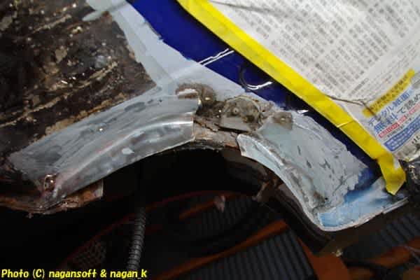 「運転席床手前側の錆穴切断箇所その2」に鉄板を接ぎます。