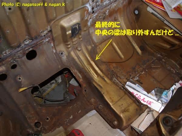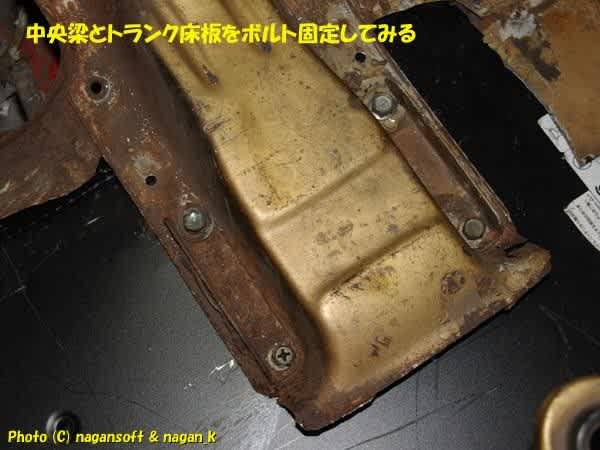 この中央梁は最終的には取り外すのですが、今はトランク床位置決めの要になっているので外さずに進めます。