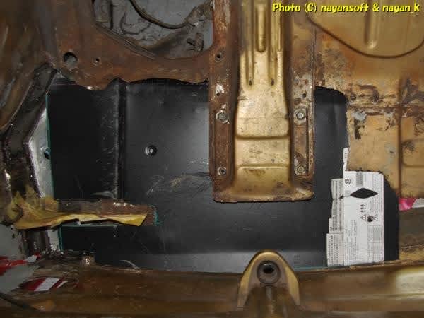 この状態にてラックブラゲットが被さる箇所以外でトランク床と中央梁が溶接されている箇所を探ります。