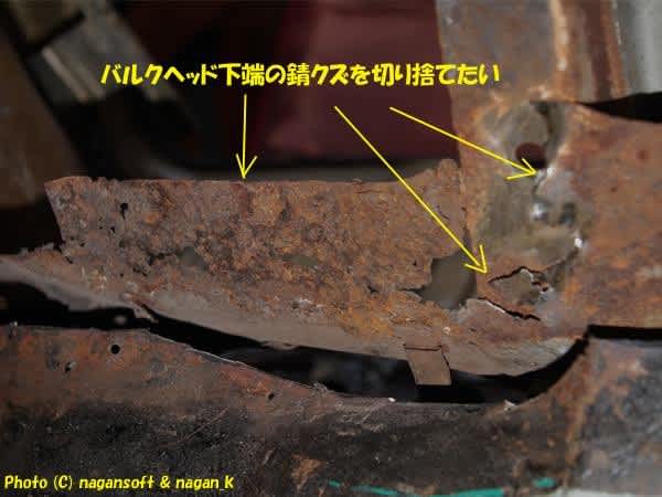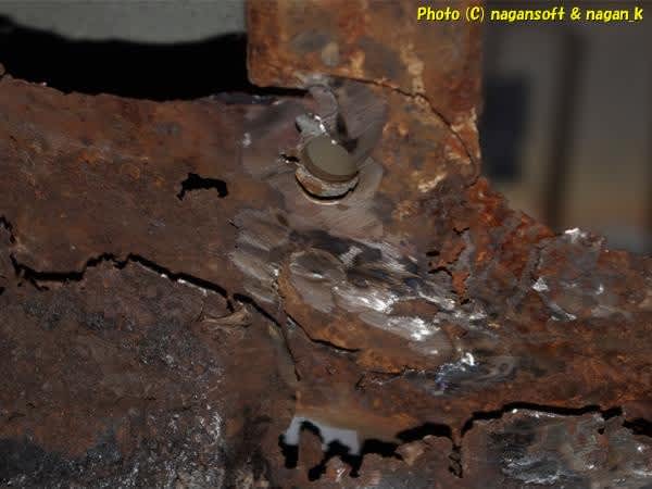 中央梁内側底というのかな?バルクヘッド下端部分です。錆はこんな状態ですよ。