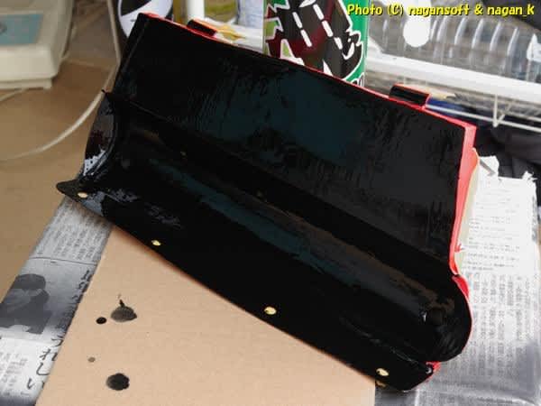 きちんとマスキングできないのにスプレーガン塗装したところで、表面の赤色を汚すのが明白なりです。