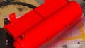 スプレー缶を切開して作った部品なので、スプレー缶上下部分のリブ折りのところをマスキングするのが超大変なり….。というか私が使っている安物マスキングテープではこの小さい角度を折りこめないことが判明。