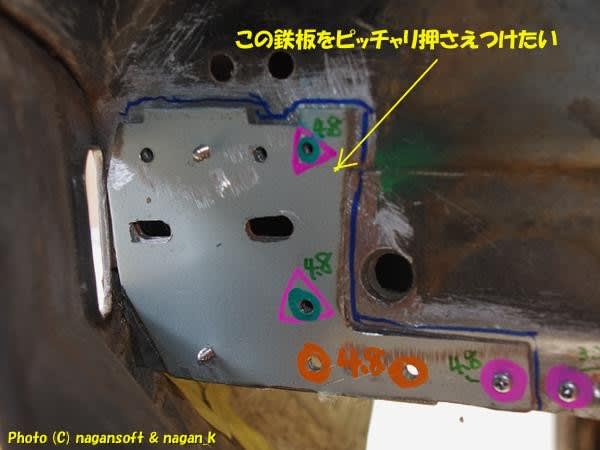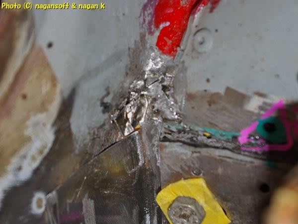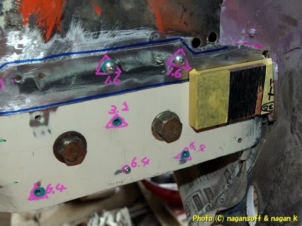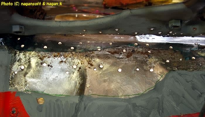 どうすっかなー。ここに貼り付けるパッチ鉄板を作ってバネルボンド施工のときに上からぺタッと….。