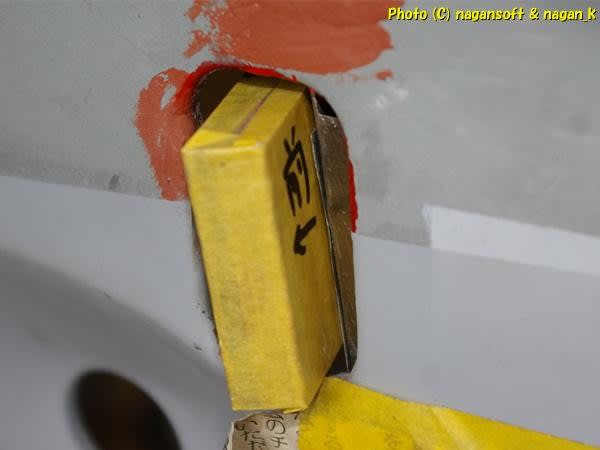 その化粧パッチの縁を微妙にリブ折りして少しでも接着強度を稼ぐようにしました。