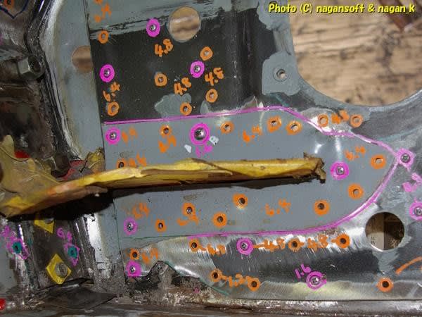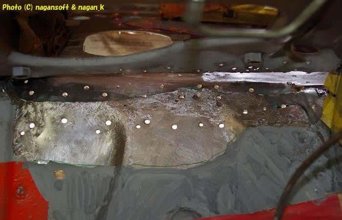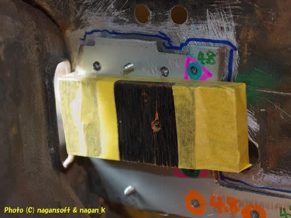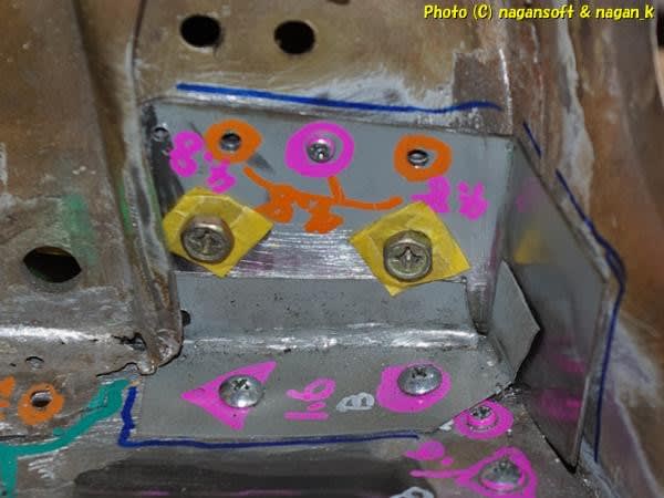 R-2君、トランク床鉄板パネルボンド施工前の微調整6日目