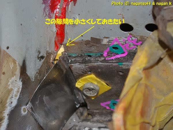少し隙間がありますが、これは鉄板を差し込む隙間です。そしてこの数ミリの隙間はバネルボンドで塞ごうという作戦です。