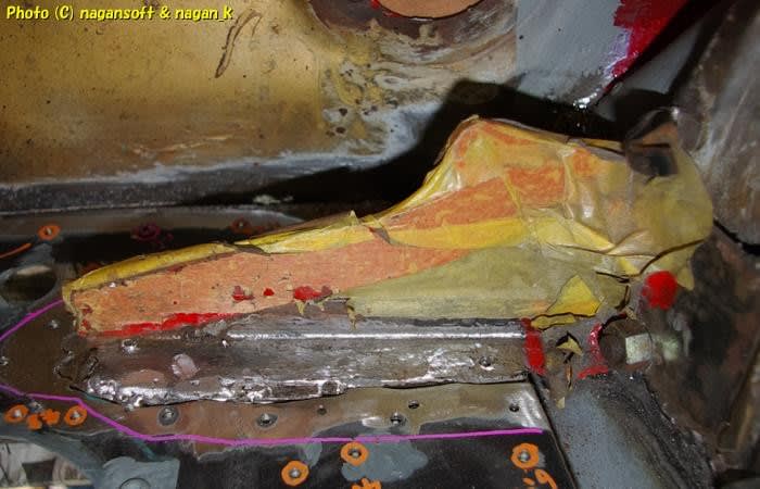 室内鉄板の先端部分、運転席足元の奥ですよ。