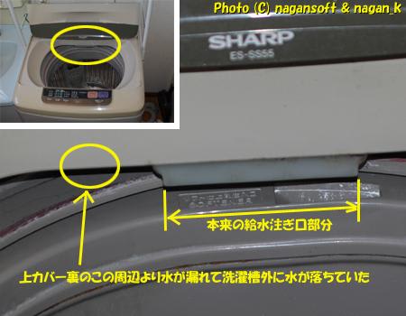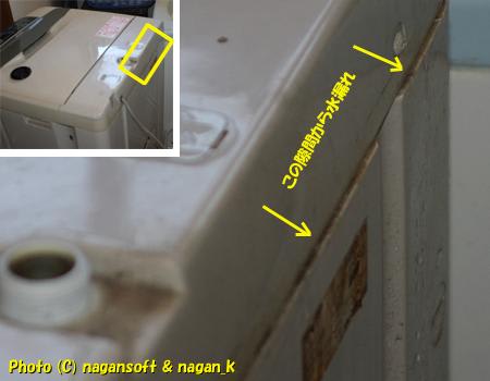 給水口周辺から、給水機構のスポンジ劣化による水漏れ。スポンジを素人インチキ交換修理