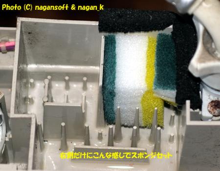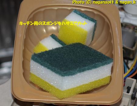 さて、以前に突っ込んだスポンジを取り外して、新しいスポンジをハサミでチョキチョキして作成です。