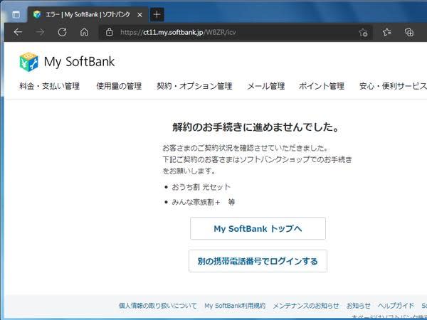 えーい。けたくそ悪い。初期のソフバンはよかったけどあるときから金の亡者みたいな感じになったしなー、もうお前の電話番号いらんわ。解約じゃー。まずはWebからMyPageでやってみよう。