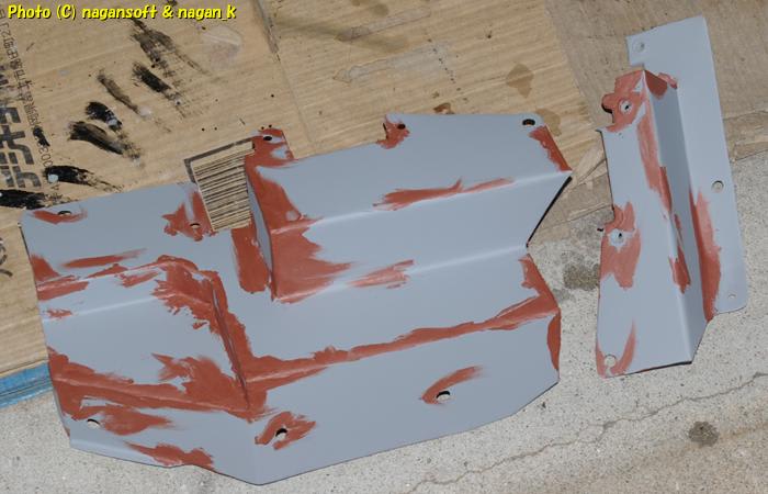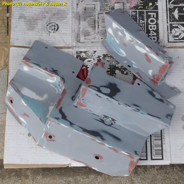 まだまだパテ修正の必要があるのですが、いろんな色で乱視の私の目には微妙な歪みが分かりずらくなってきたので、プラサフを吹いてリセットします。
