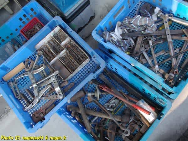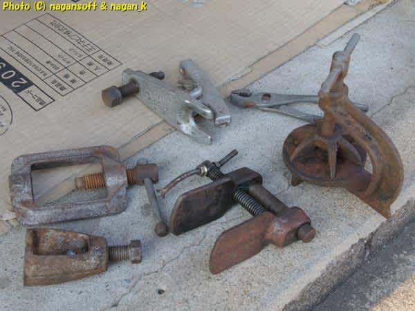5年前に痴呆親父が引退するときに、「お前にはこれで十分や」と押し売りされた、サビサビとか曲がっているとかの工具。