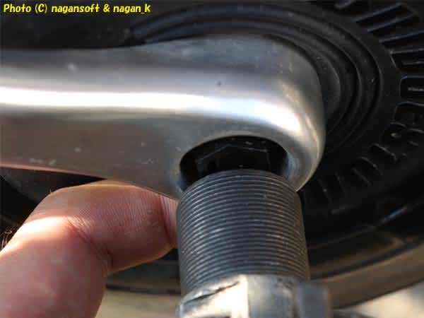 サイズがわかればなー。クランクの内側にネジ溝が切ってあるのよね。そのサイズがわかれば、そういうプーラーを探す手がかりになるのに。またはその溝のボルトを見つけて、ドリルで中空にして内側にタップ切ったら自作工具できると思うのよね。