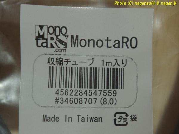 尚、100円ショップのものは収縮がいまいちなのですが、モノタロウの物は綺麗に収縮してくれるので私のお気に入りになってます、もちろん100円ショップのものとは雲泥の差です。