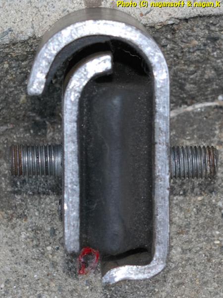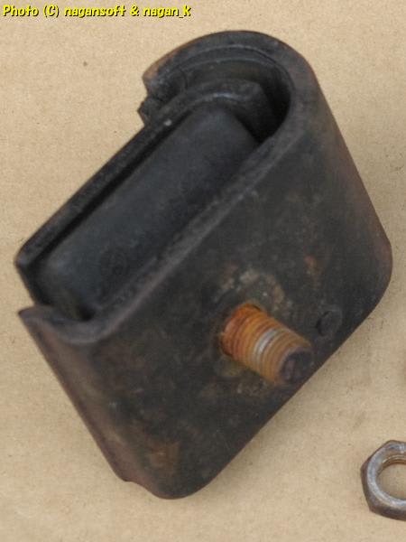 このエンジンマウントのネジ溝部分が軽度に錆びているのがわかりますか?