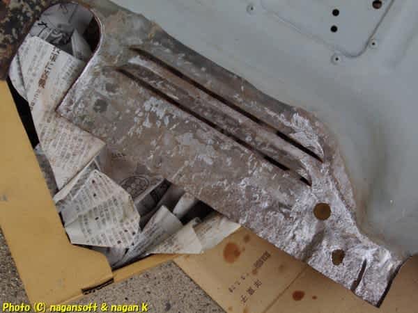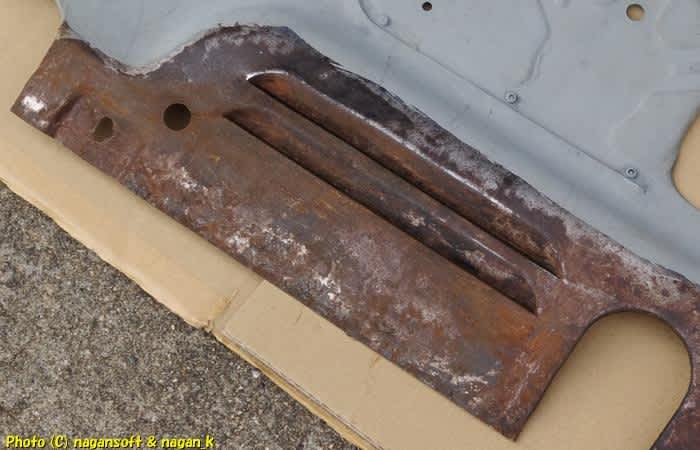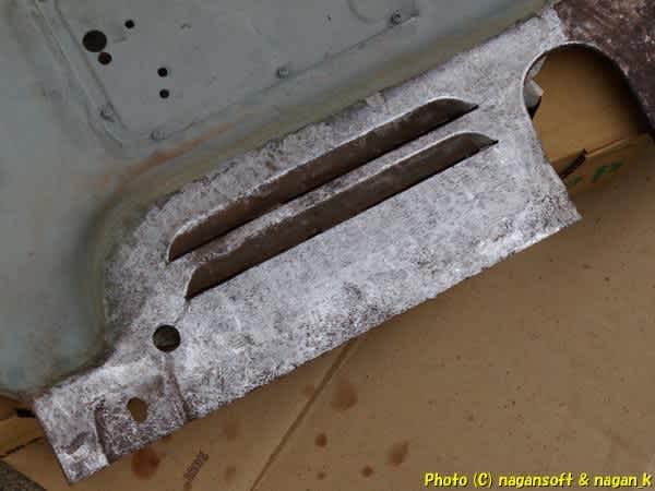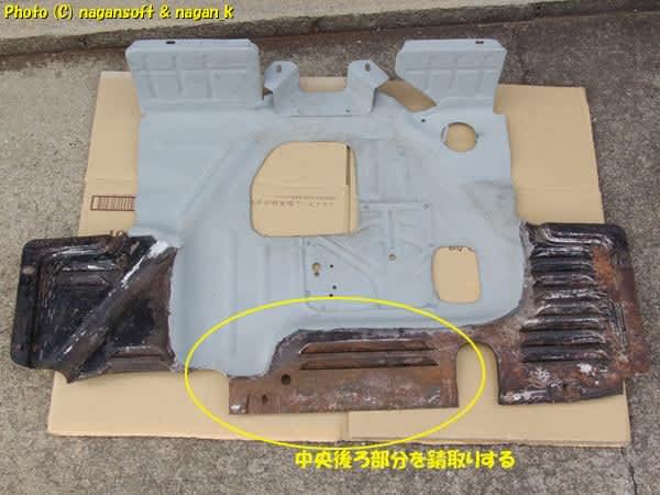 エンジンアンダーカバーの中央後ろ部分を錆取りすることにします。