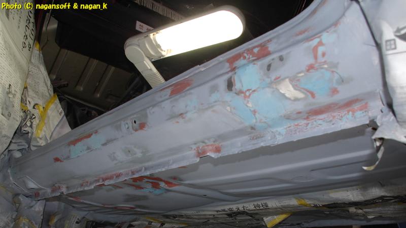 左サイドシル、助手席裏、左後席床裏のパテをずっと水研ぎしてました。