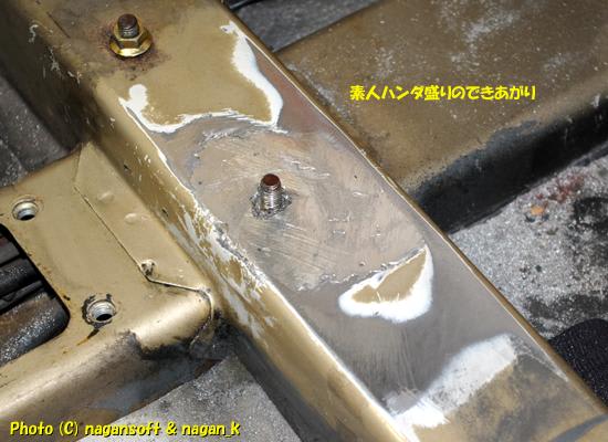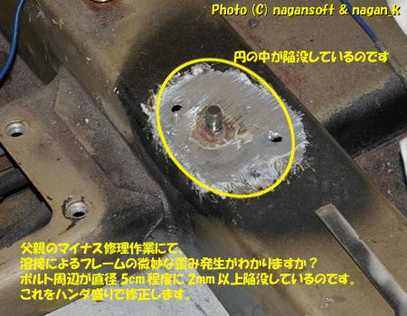 前回に父親マイナス修理で大変なことになっていたカ所を、溶接されていたワッシャーを剥がし、溶接サビを削るところまで作業しました。