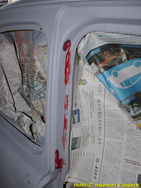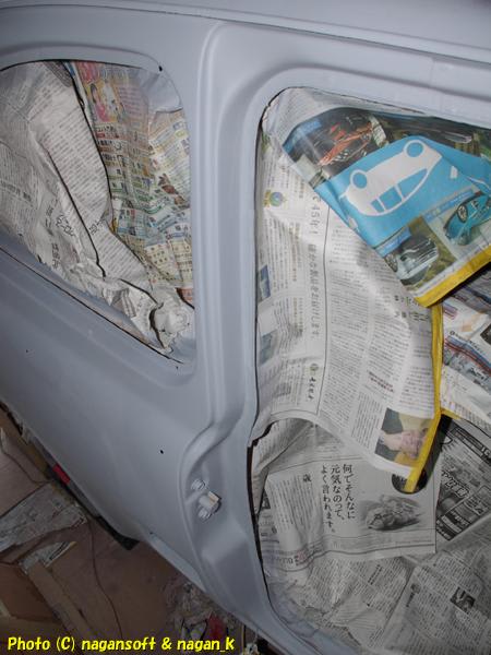 左乗降口の最終調整。左右乗降口室内側の耳部分を掃除、クオーターガラスはめ合い部の室内側耳部分を掃除です。