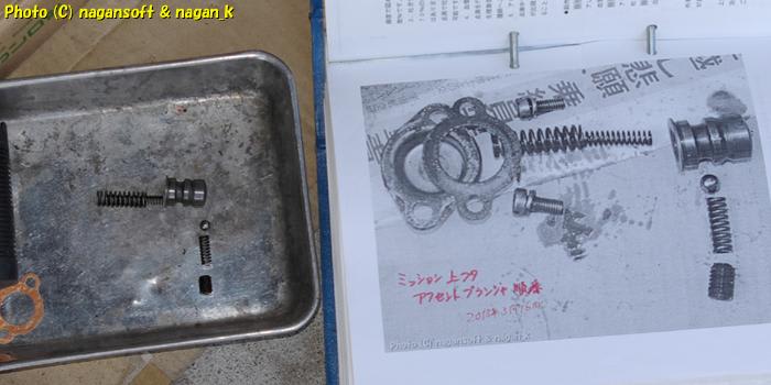 どういうふうに部品が入っていたのかを、ばらしたときに撮影した写真(その時のブログに写真をアップしてます)を見て順番に並べます。