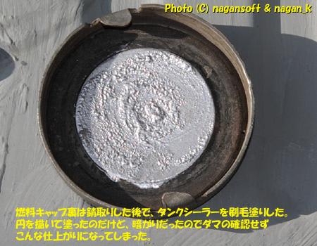 燃料キャップ内側も、錆をリューターで削ってから、タンクシーラーを刷毛で円を描くように塗りました。