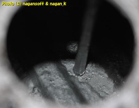 削りながら断面を確認したのですが、この溜まり部分の内部は綺麗に詰まってました。