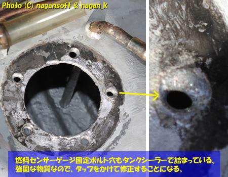 燃料ゲージを固定するボルト穴がこんもりとやられてます。