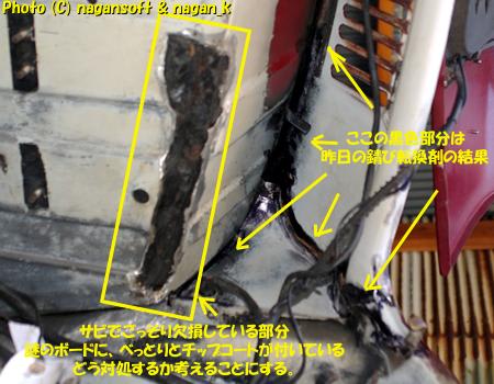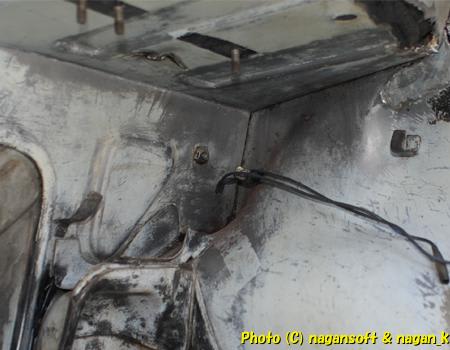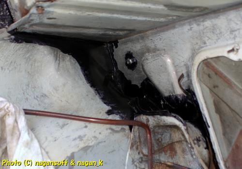 エンジンルーム天井角の大きく錆び欠損部分をどうしょう。