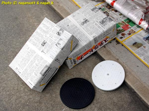 このターンテーブルの上に、ダンボールを置いてクルクルと回すのです。