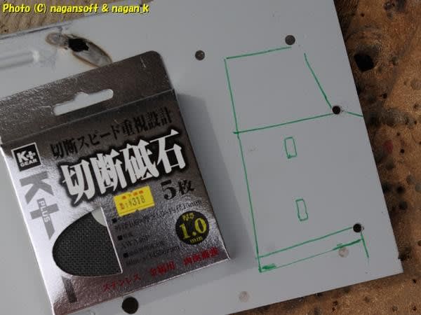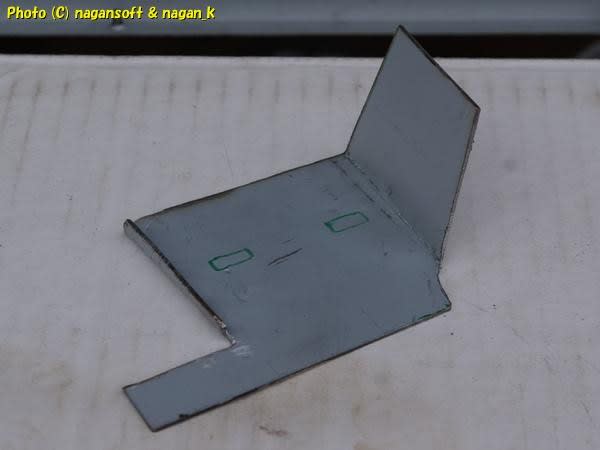 鉄板に型紙を写し取ります。どのみち削って曲げてと微調整をするのでだいたいで写し取ってますよ。