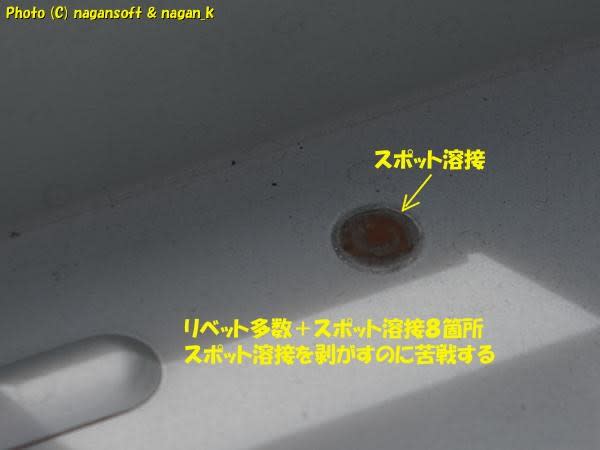 リベットはいいのですが、丁寧に綺麗に加工されているスポット溶接をひきはがすのが超大変です。