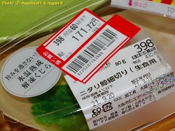 嫁に電話です。「クジラの刺ししかあらへん。ちょっと高いけど買っていいか?許しがでるんか?」