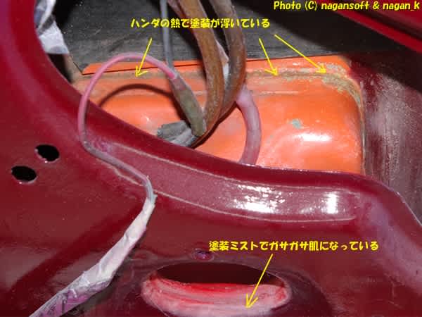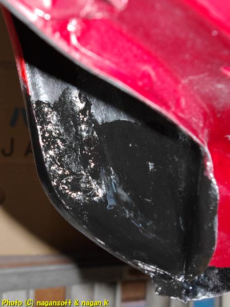 写真を見たらPOR-15の顔料が泳いでパテが微妙に透けている箇所がありますなー。