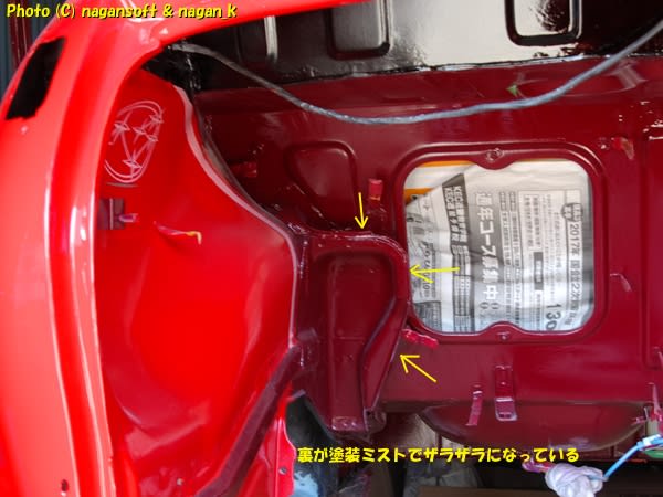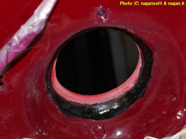 ガソリンタンク鶴首がくぐる部分の室内側が塗装ミストでザラザラになっているのと、給油口ソーサー部の裏側がハンダ処置する前に塗装していたのだがハンダの熱でダメになっている。
