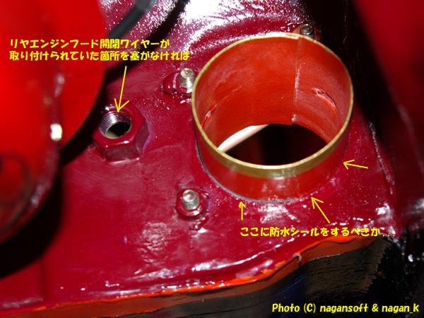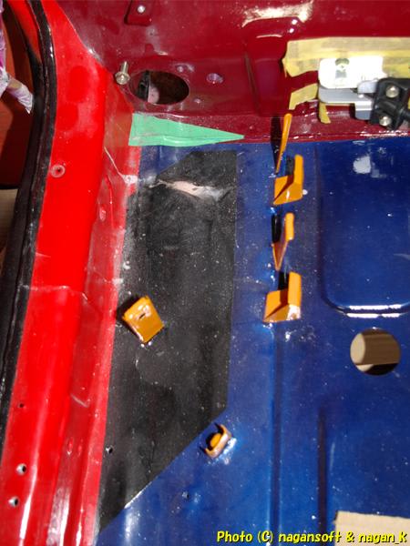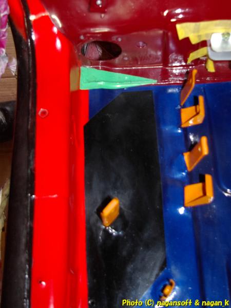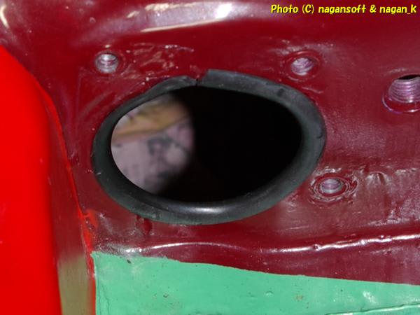 そういえば、オリジナルのエンジンルーム開閉ワイヤー取付穴を塞がなければならなかった。