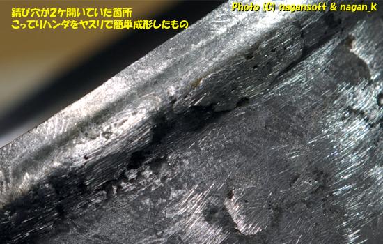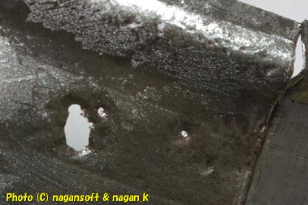 私がお手軽と判断したのは、あちこちに小さい穴が開いているが、まだ素材の鉄板が凄く薄いながらも存在していることです。