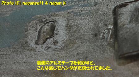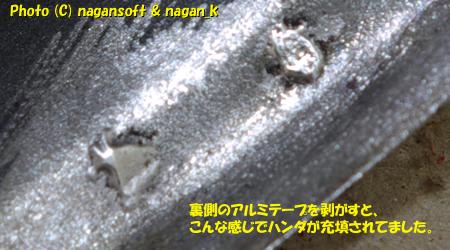 今回は、アルミテープで借りふさぎしてハンダ流し込み作戦にしました。