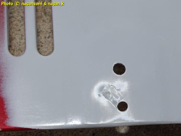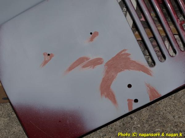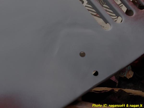 もう片方のパッチ鉄板貼り付け部位は、パテ整形が下手くそでした。というかパテ盛りが少なすぎでした。