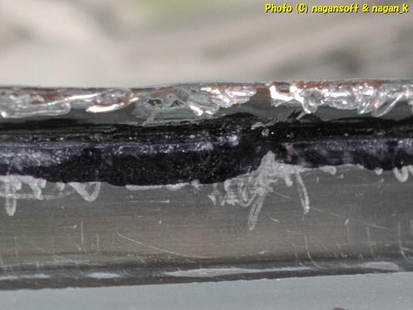 この部分は、鉄板合わせ部分にサビ転換剤を処置してます。合わせ以外の縁部分は鉄肌むき出しということです。