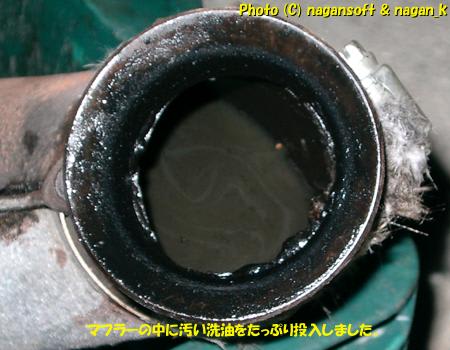 マフラーの中に汚い洗い油を流し込んでおきました。