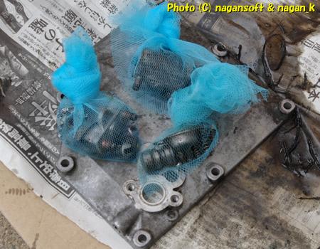 あとは、これらの細かい部品がなくならないように、それぞれのパーツ単位でネットに入れて、洗油にドボンです。
