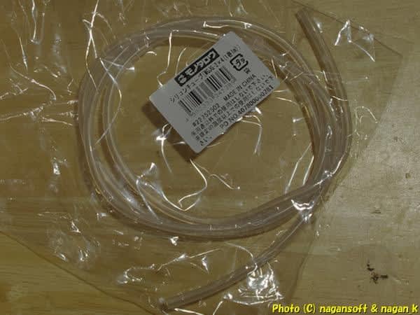 シリコンホースだから柔らかいのよね。スプレーガン塗料カップ息継ぎホースならいけるかなーとおもうのですが、やってみないとわかりません。